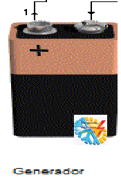 El generador es el encargado de generar la corriente eléctrica que dependiendo de el nos puede fornecer varios voltios, como por ejemplo, 1,5 voltios, o 3 voltios si conectamos dos generadores en serie de 1,5 voltios, como muestra la imagen.